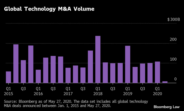 In the first quarter, global tech saw $107.9 billion in M&A activity—the highest volume of any quarter since the first quarter of 2019. The second quarter does not seem like it will get anywhere close. To date, only $8 billion in deal activity has taken place this quarter.