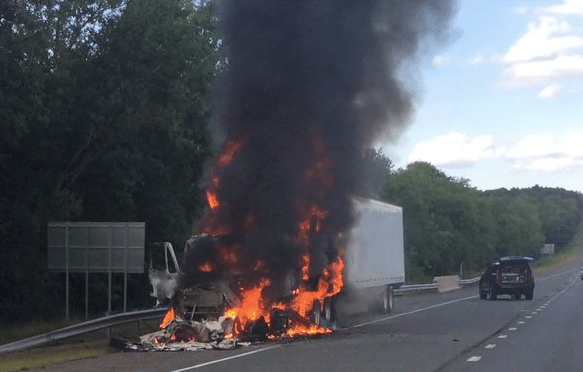 Crews at Scene of Tractor Trailer Fire on I-84 in Tolland - NBC Connecticut