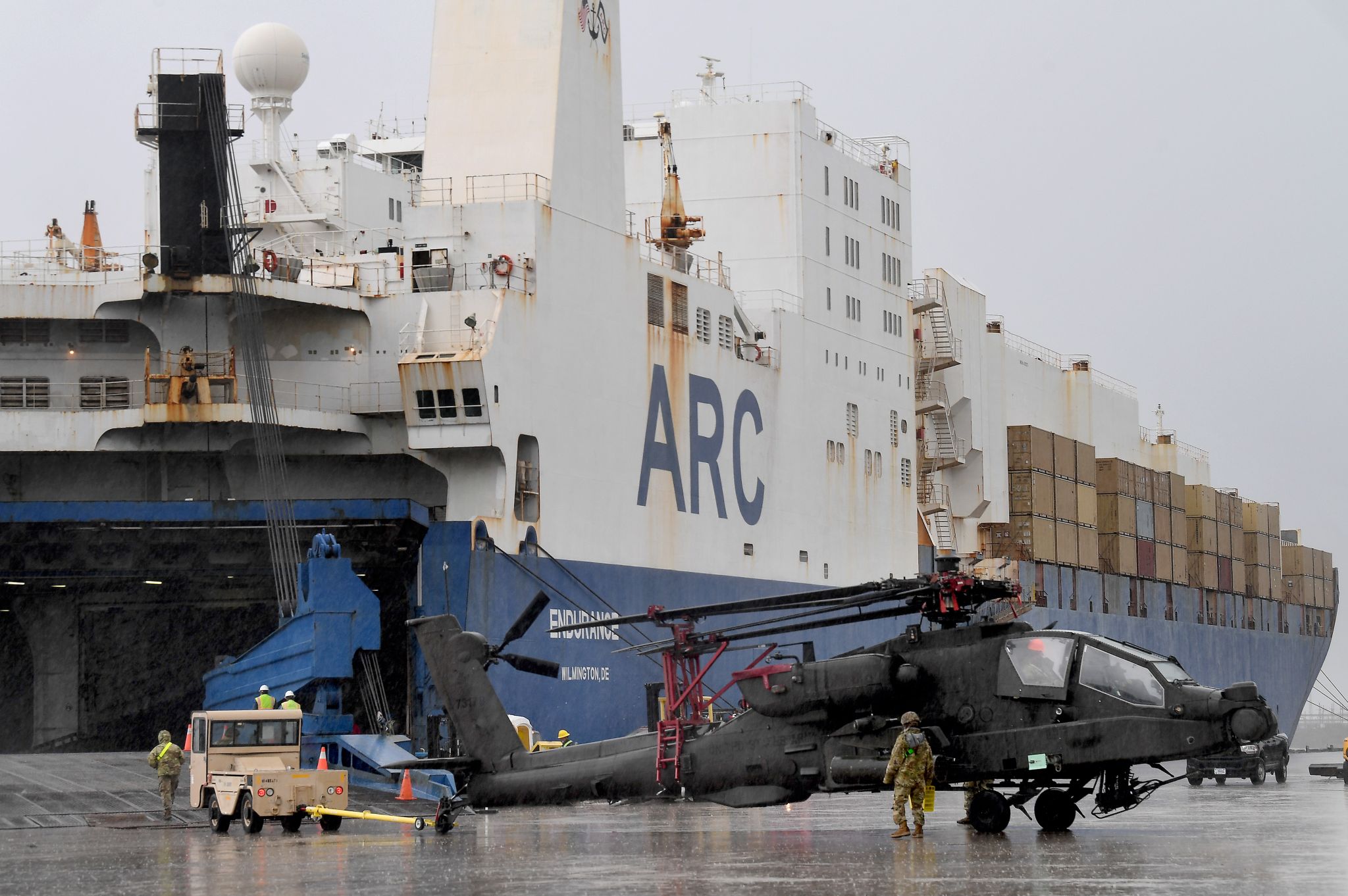 The cargo has been arriving by air and rail for over a week in preparation for the arrival of two transport sea vessels, the first of which arrived at the port early Wednesday morning.