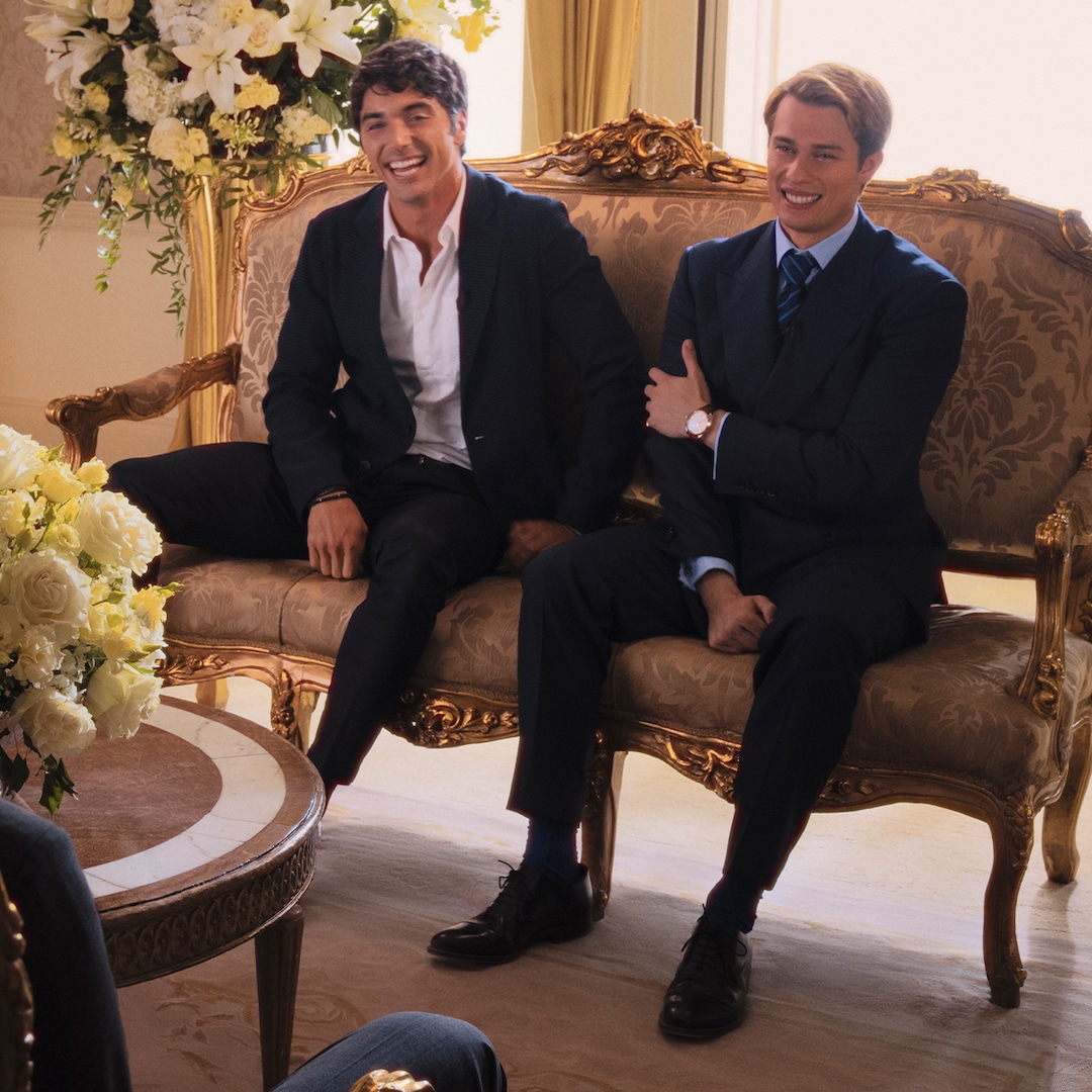 And the clip may seem familiar for fans of the 2019 Casey McQuiston novel the movie was adapted from, as it's pulled directly from the pages. Fresh off the royal wedding scandal—during which very expensive cake is ruined—that forces First Son Alex Claremont-Diaz (Taylor Zakhar Perez) and Britain's fictional Prince Henry (Nicholas Galitzine) into pretending to be BFFs, the deleted scene sees the pair have a late-night confrontation in Kensington Palace.